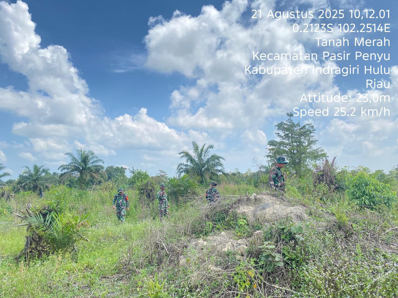 Antisipasi terjadinya kebakaran hutan dan lahan Telah hadir Babinsa Serda Wahyudi Indra bersama rekan babinsa Sekecamatan di Kelurahan Tanah Merah Kecamatan Pasir Penyu, Kabupaten Inhu. Kamis (21/08/2025).