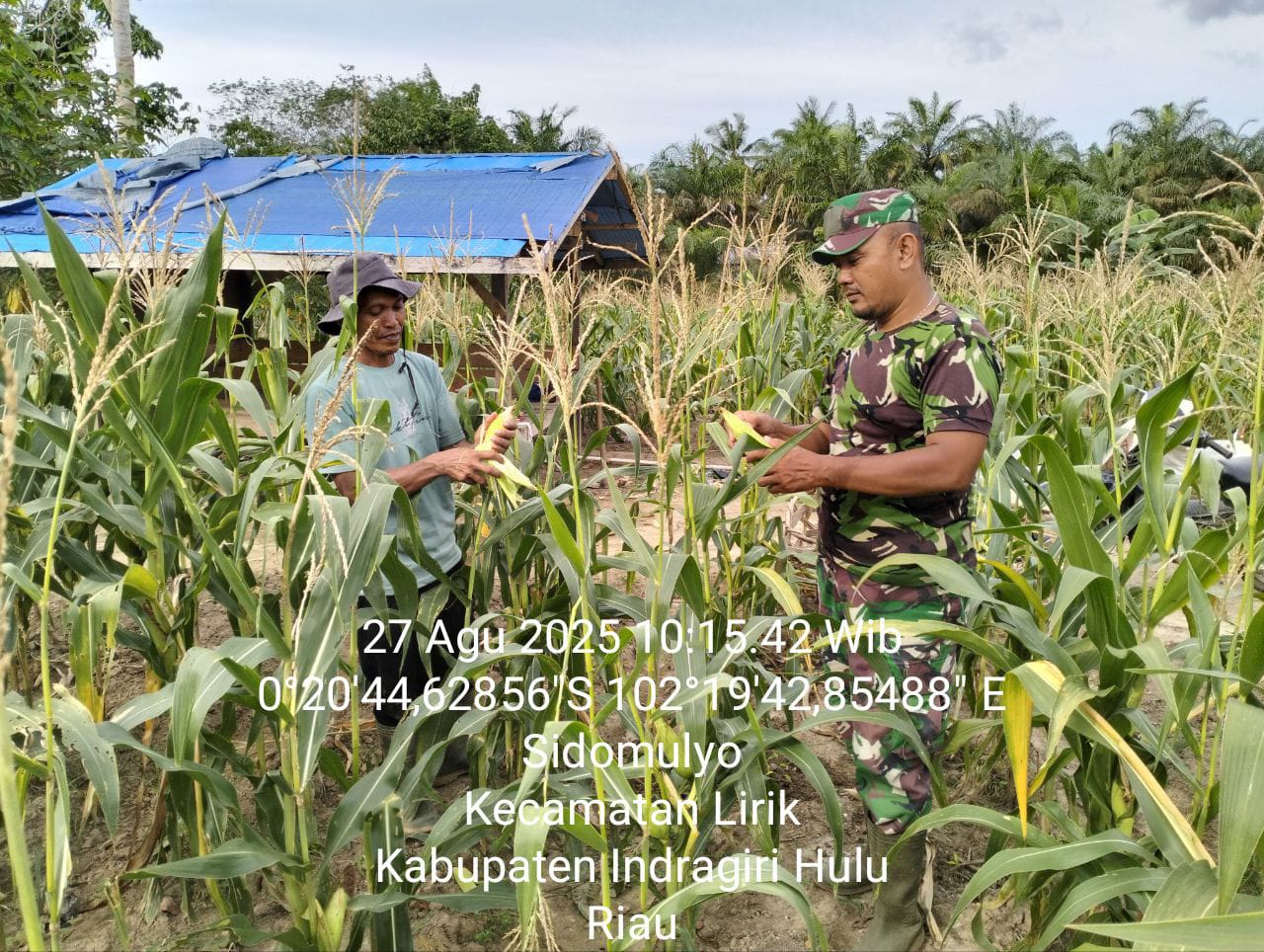 HunterNews Inhu – Bintara Pembina Desa (Babinsa) Koramil 04/Pasir Penyu Kodim 0302/Inhu Serda Indra membantu melaksanakan panen jagung di lahan milik Nano (49) warga Desa Sidomulyo, Kecamatan Lirik Kabupaten Inhu. Rabu (27/08/2024).