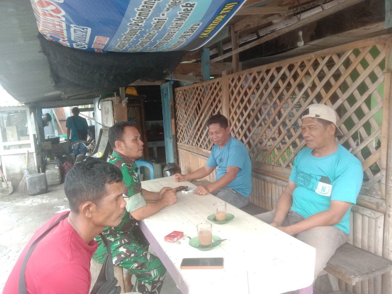Kali ini Babinsa melaksanakan komsos di warung salah satu warga, pada kesempatan ini Babinsa berbincang sambil bercanda dengan warga, Babinsa memanfaatkan momen ini untuk berkunjung sekaligus bersilaturahmi dengan warga atau sambil keliling kampung melihat keadaan dan keamanan kampung.