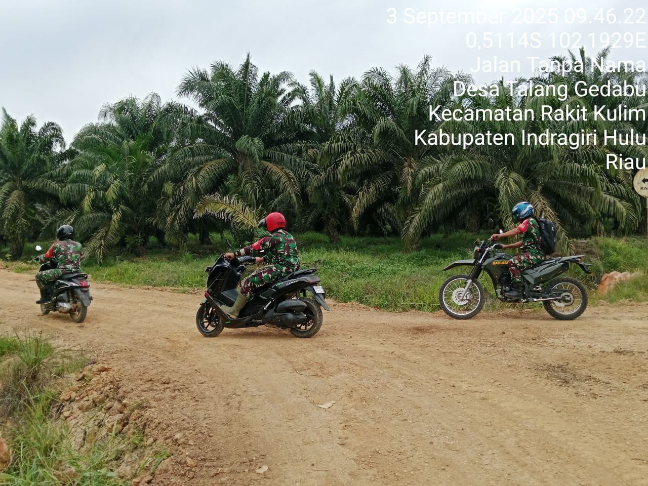 Antisipasi terjadinya kebakaran hutan dan lahan Telah hadir Babinsa Serda Wahyudi Indra bersama rekan babinsa Sekecamatan di Desa Talang Gedabu Kecamatan Rakit Kulim, Kabupaten Inhu. Rabu (03/09/2025).