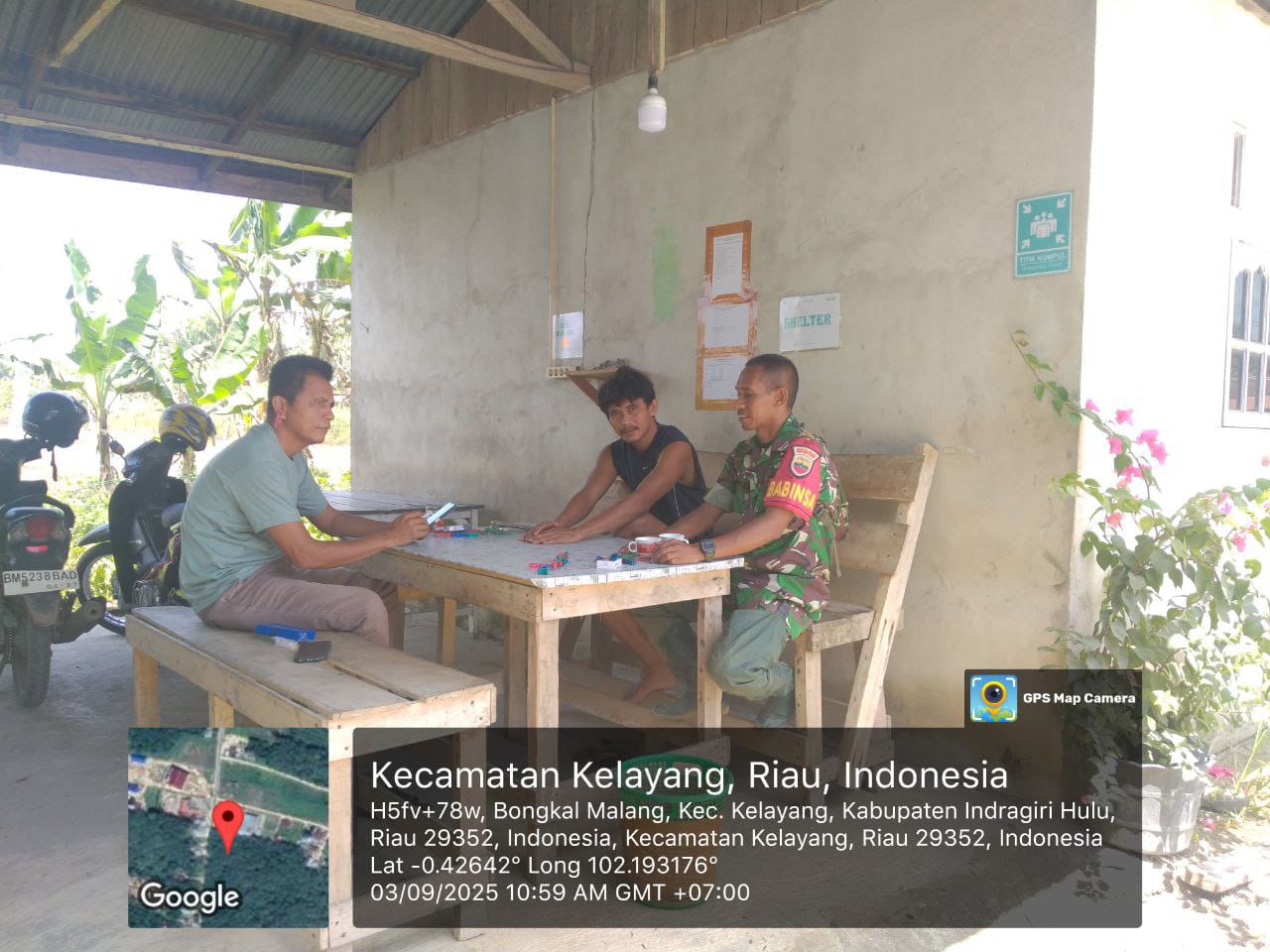 HunterNews Inhu – Babinsa Koramil 04/Pasir Penyu Kodim 0302/Inhu Serda Junaidin melaksanakan kegiatan komunikasi sosial (Komsos) di Desa Bongkal Malang Kecamatan Kecamatan Kelayang Kab. Inhu, Rabu (03/09/2025).
