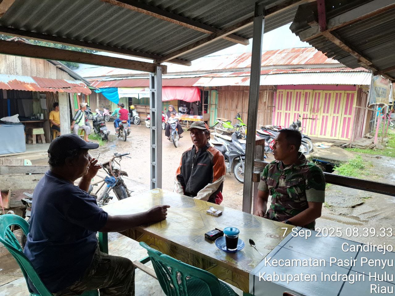 Hari ini Serda Mulyono Babinsa Koramil 04/Pasir Penyu Kodim 0302/Inhu, Melaksanakan Komsos dengan warga binaannya, bertempat di Desa Candirejo Kecamatan Pasir Penyu Kab Inhu, Minggu (07/09/2025).