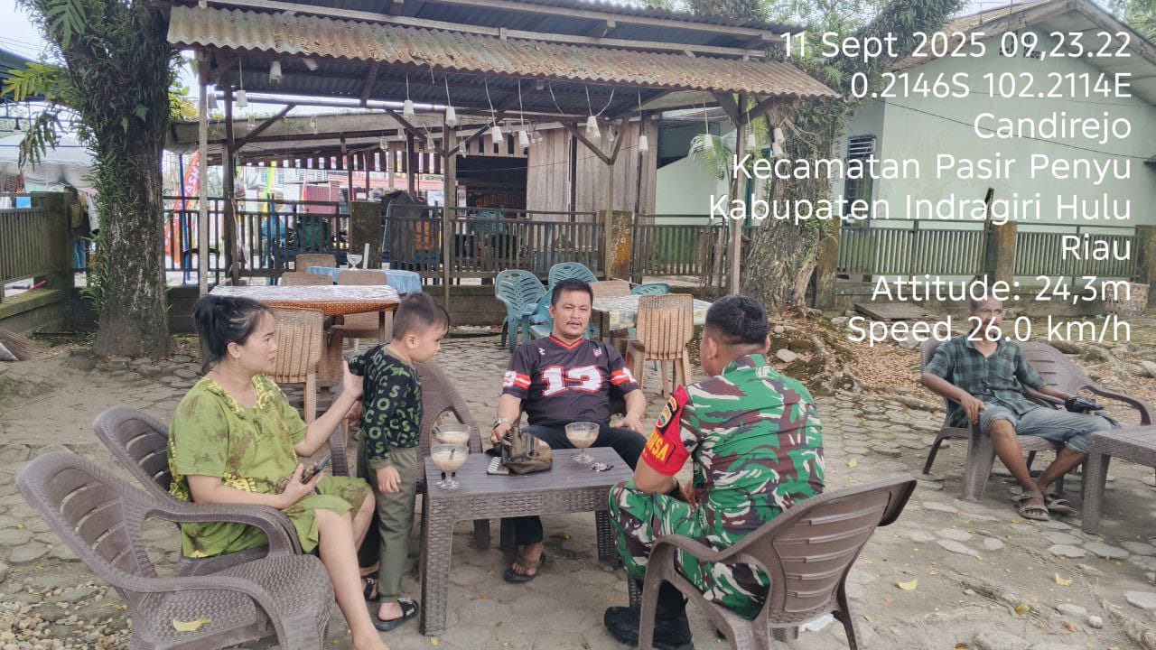 HunterNews Inhu – Anggota Koramil 04/Pasir Penyu Kodim 0302/Inhu Praka Indra Abadi melaksanakan Komunikasi Sosial (Komsos) bersama warga binaannya di wilayah Desa Candirejo, Kec. Pasir Penyu Kab. Inhu. Kamis (11/09/2025).