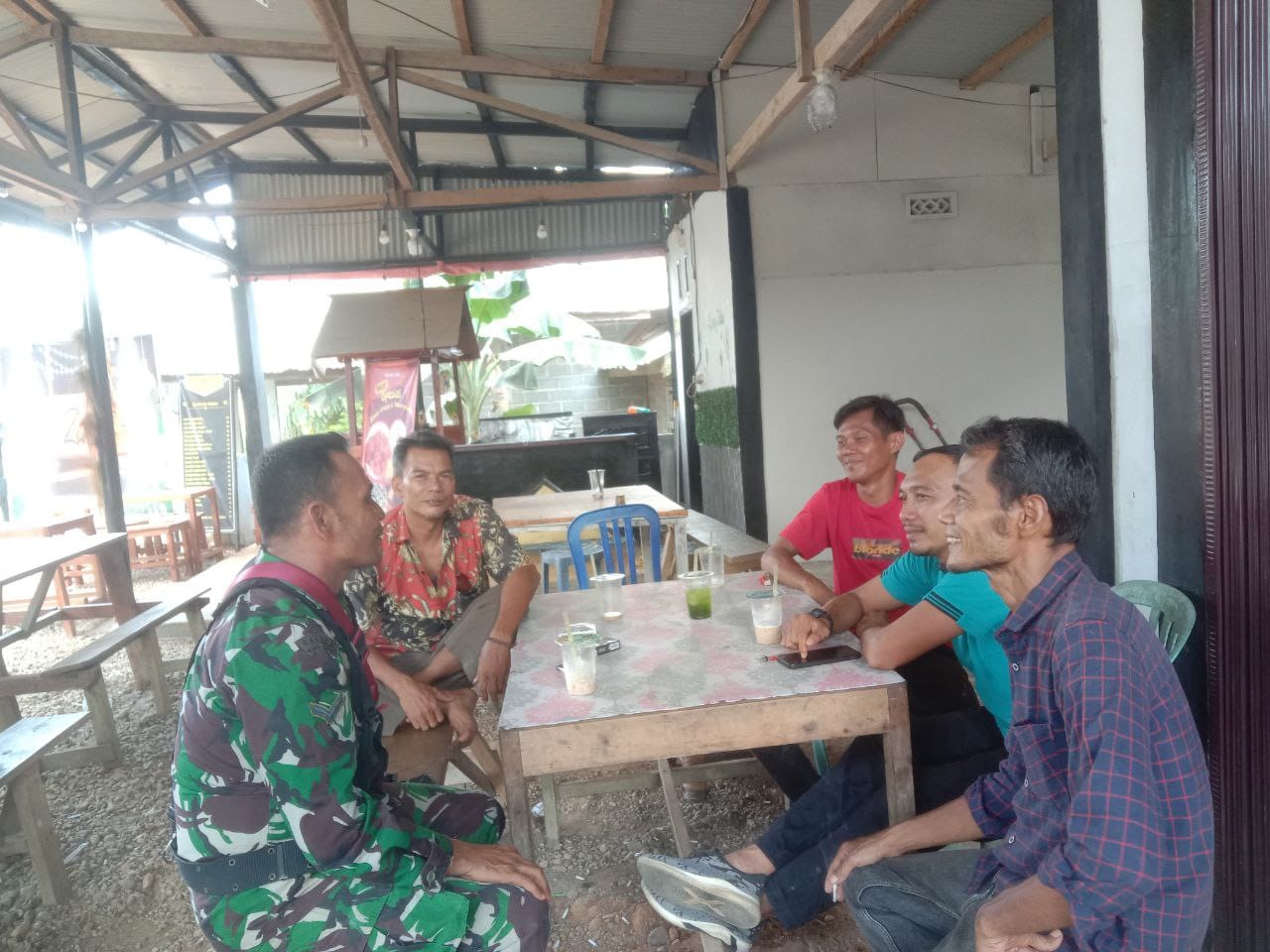 Kali ini Babinsa melaksanakan komsos di warung salah satu warga, pada kesempatan ini Babinsa berbincang sambil bercanda dengan warga, Babinsa memanfaatkan momen ini untuk berkunjung sekaligus bersilaturahmi dengan warga atau sambil keliling kampung melihat keadaan dan keamanan kampung