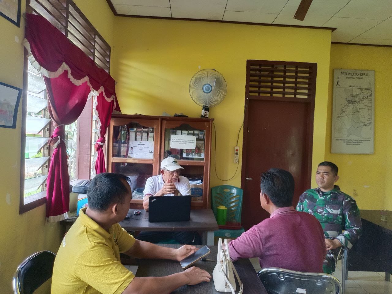 HunterNews Inhu – Babinsa Serka Edi Fitra anggota Koramil 05/Peranap Kodim 0302/Inhu, melaksanakan kegiatan Komunikasi Sosial (Komsos) bersama UPTD Pertanian di Kecamatan Peranap, Kabupaten Indragiri Hulu, Selasa (30/09/2025).
