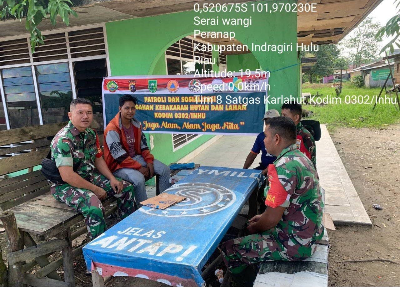 HunterNews Inhu – Tim Satgas Karhutla Koramil 05/Prp kembali melaksanakan kegiatan patroli gabungan dalam upaya mencegah kebakaran hutan dan lahan (Karhutla) di Desa Serai Wangi Kec. Peranap, Kab. Inhu Titik Koordinat : 0°520676S 101°970230E, Selasa (7/10).