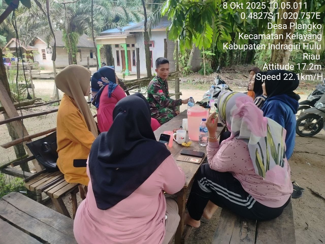 Praka Zulkifli Pasaribu Babinsa Koramil 04/Pasir Penyu Kodim 0302/Inhu melaksanakan kegiatan komsos bersama ibu-ibu PKK dan Kader warga binaan di desa Pelangko Kec. Kelayang Kab. Inhu, Rabu (08/10/2025).