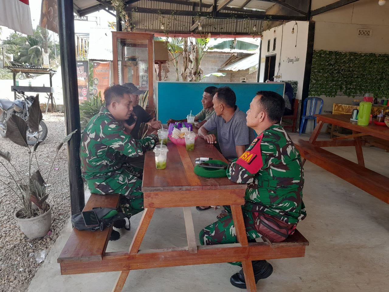 HunterNews Inhu – Babinsa Koramil 05/Peranap, Kodim 0302/Inhu, Koptu R. Manurung, melaksanakan pembinaan teritorial (Binter) dengan metode komunikasi sosial (komsos) di salah satu warung kopi. Kegiatan di Desa Pematang Kecamatan Batang Peranap, Kabupaten Indragiri Hulu, pada Sabtu (11/10/2025).