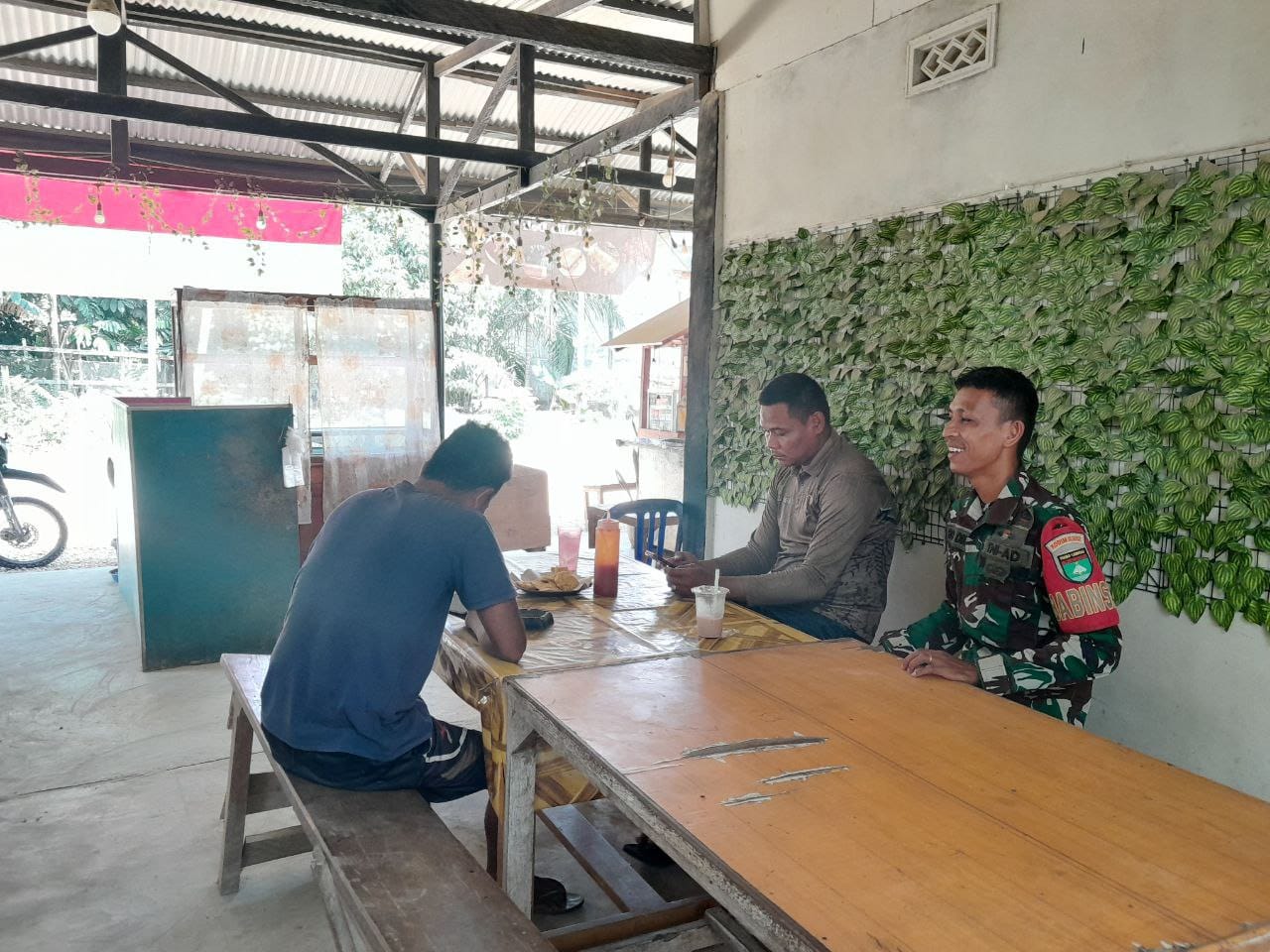 Kali ini, Babinsa Kopda Rahmad Dika memanfaatkan warung Kopi untuk berkomunikasi dengan warga binaannya.