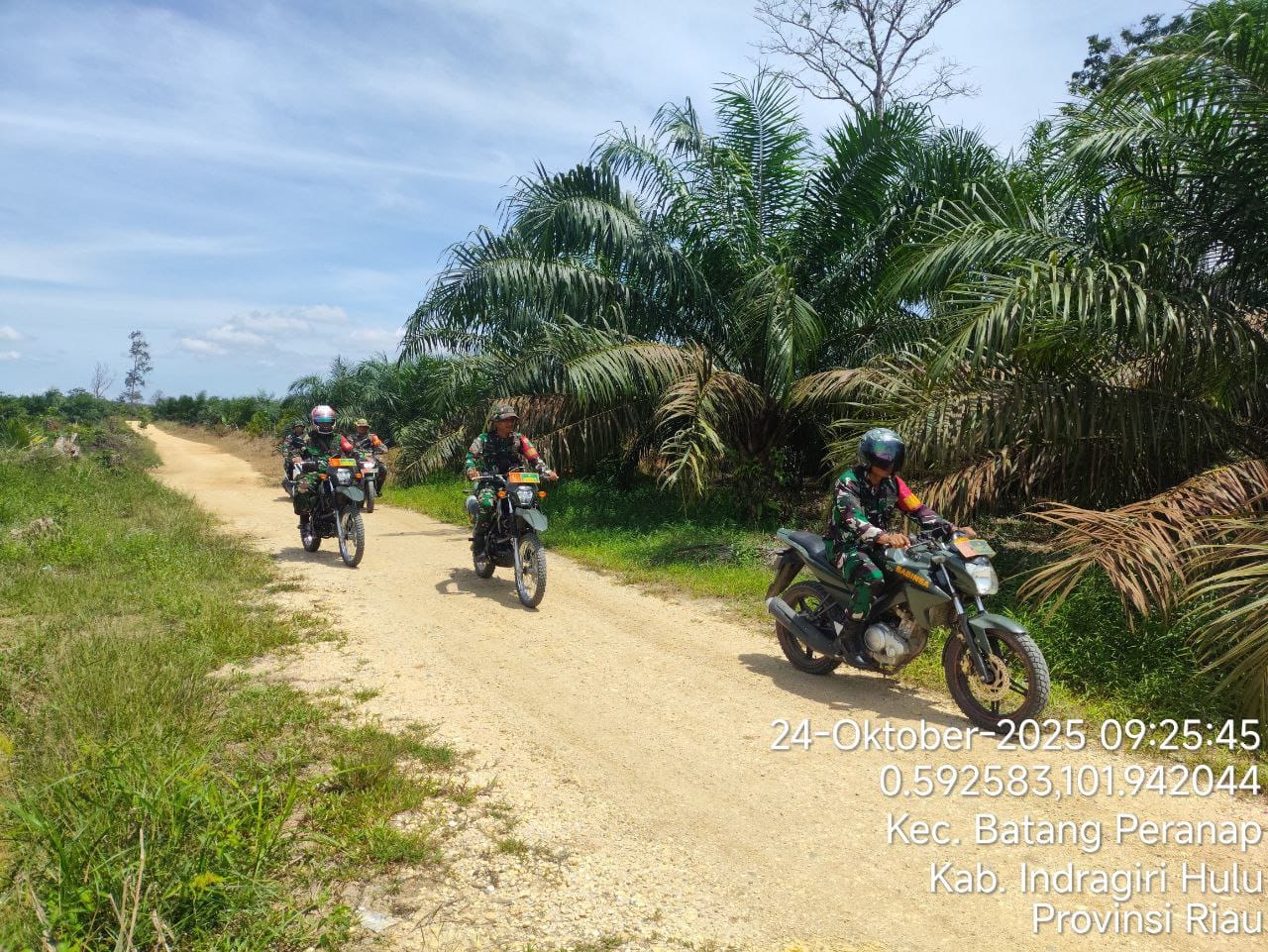 Inhu, HunterNews.Com – Tim Satgas Karhutla Koramil 05/Prp kembali melaksanakan kegiatan patroli gabungan dalam upaya mencegah kebakaran hutan dan lahan (Karhutla) di Desa Selunak. Kec. Batang Peranap Kab.INHU titik Koordinat : 0.592583,101.942044, Jumat (24/10)