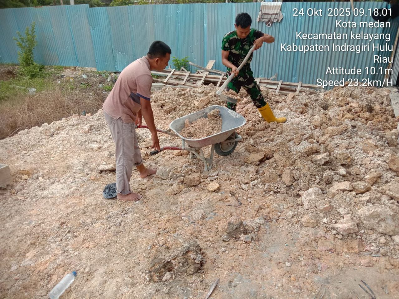 Inhu, HunterNews.Com – Bentuk kepedulian terhadap lingkungan dan keselamatan pengguna jalan ditunjukkan oleh Bintara Pembina Desa (Babinsa) Koramil 04/PP Kodim 0302/Inhu Pratu Candra Sonaya dengan salah satu warga melaksanakan kegiatan penimbunan jalan berlubang di Desa Kota Medan kecamatan Kelayang kabupaten Inhu.Jumat ( 24/10/2025 ).