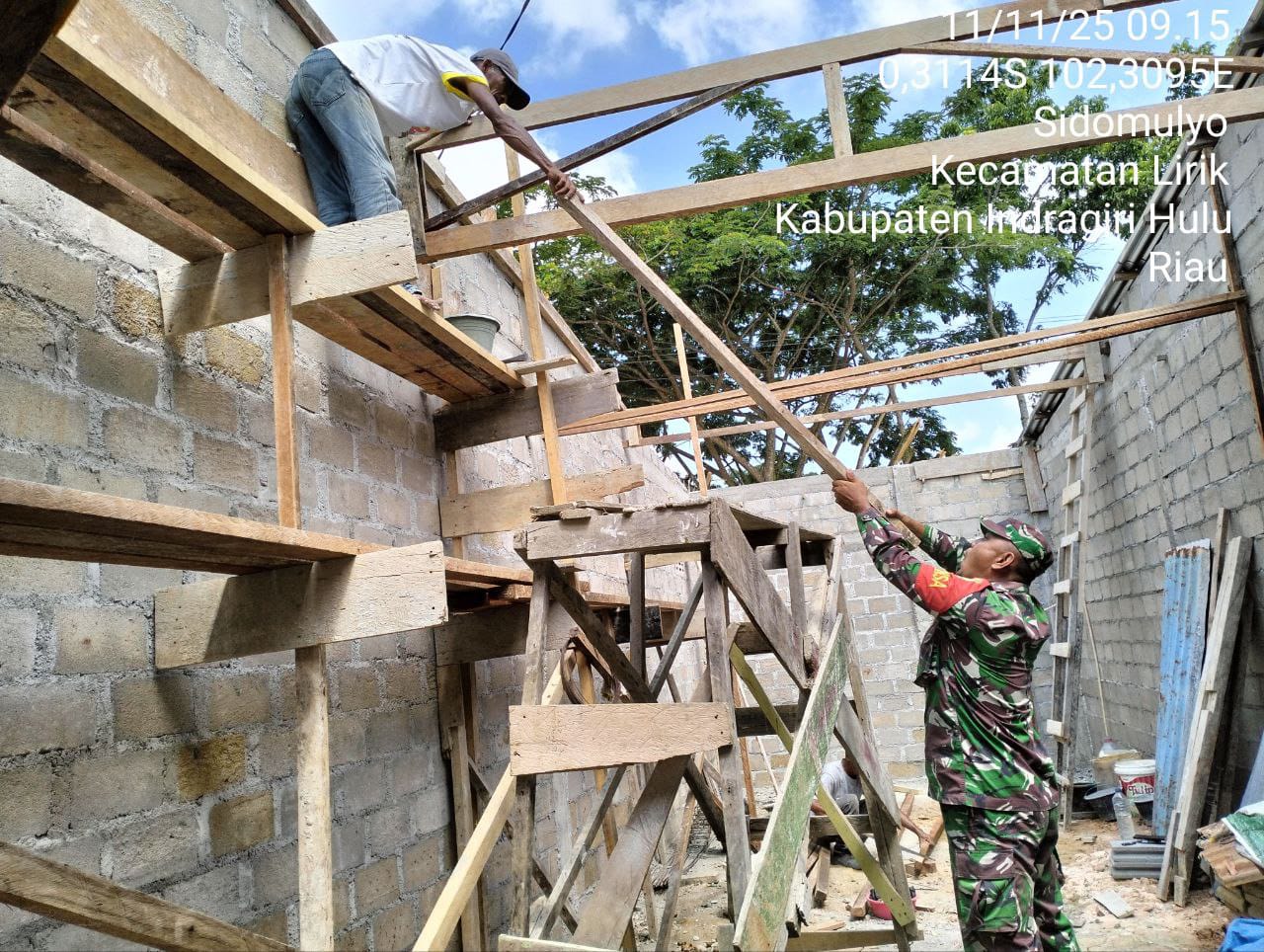 Inhu, HunterNews Com – Peduli dengn usaha warga untuk mencari nafkah saat memantau desa Babinsa Koramil 04/Pasir Penyu Kodim 0302/Inhu Serda Indra membantu dalam membuat warung milik Bapak arli di Desa Sidomulyo, Kecamatan Lirik Kab. Inhu, Selasa (11/11/2025).