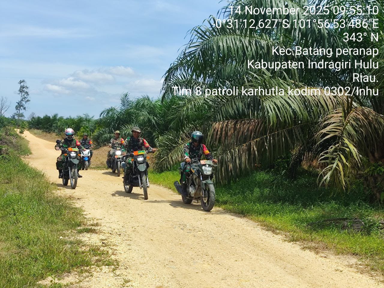 Danramil 05/Peranap, Lettu Inf Awatrianson menjelaskan bahwa kegiatan patroli ini dilaksanakan setiap hari, terutama saat kondisi cuaca panas dan angin kering yang dapat memicu kebakaran.