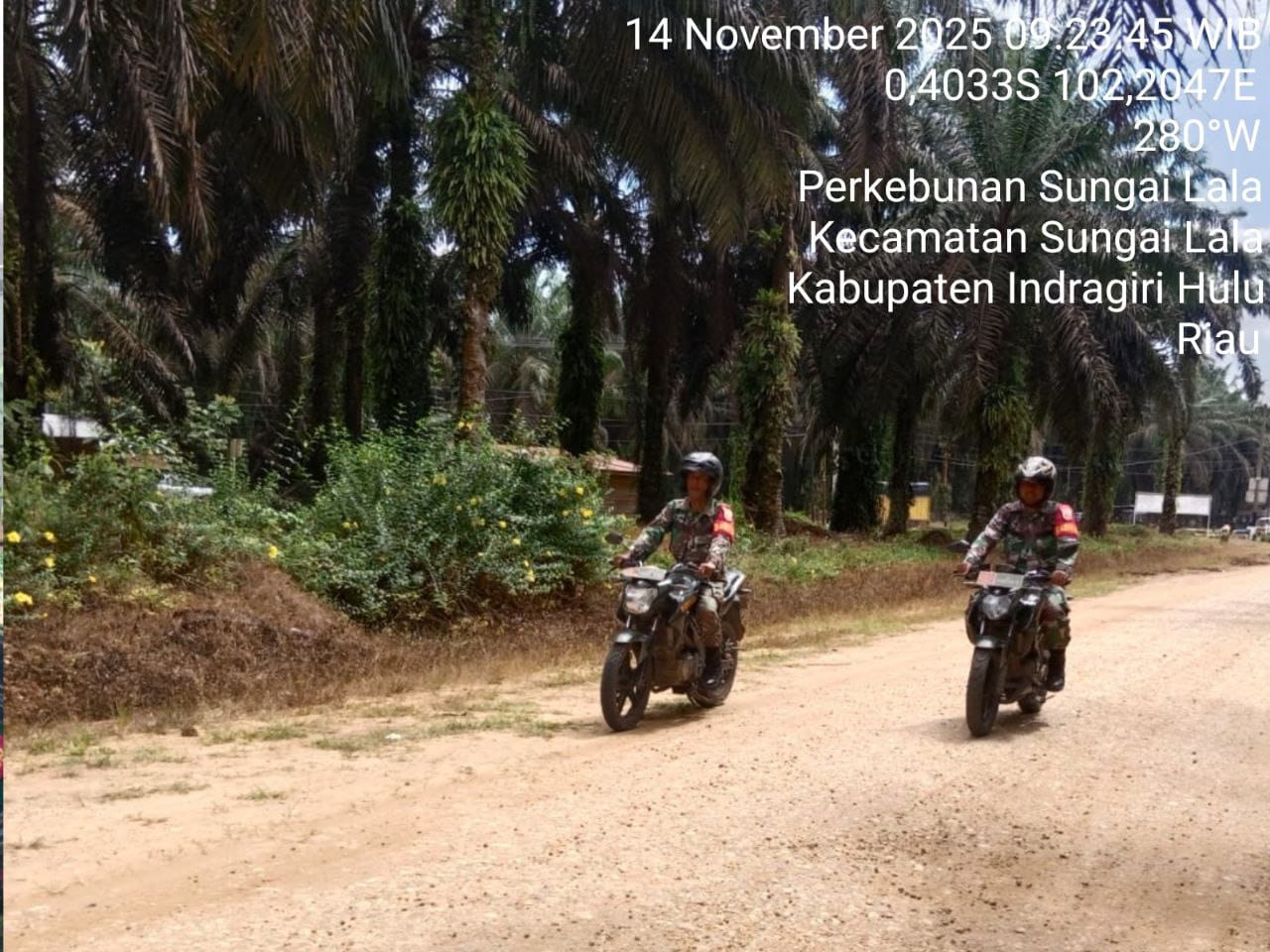 Inhu, HunterNews Com – Koramil 04/Pasir Penyu Kodim 0302/Inhu Babinsa Sertu Andi Kesuma Beserta rekan babinsa sekecamatan melaksanakan patroli dan sosialisasi karhutla Desa Perkebunan Sei. Lala Kec. Sei Lala Kab. Inhu. Jumat (14/11/2025).