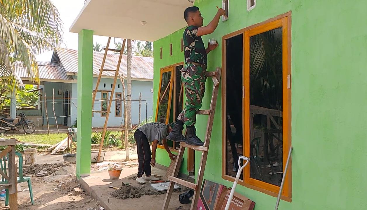 Personel Kodim 0302/Inhu-Kuansing secara langsung terlibat dalam penyelesaian berbagai tahap akhir pembangunan, antara lain pemasangan pintu dan jendela, pengecatan seluruh bagian dinding dan rangka rumah, penyempurnaan plafon serta penataan struktur atap agar lebih aman dan nyaman.