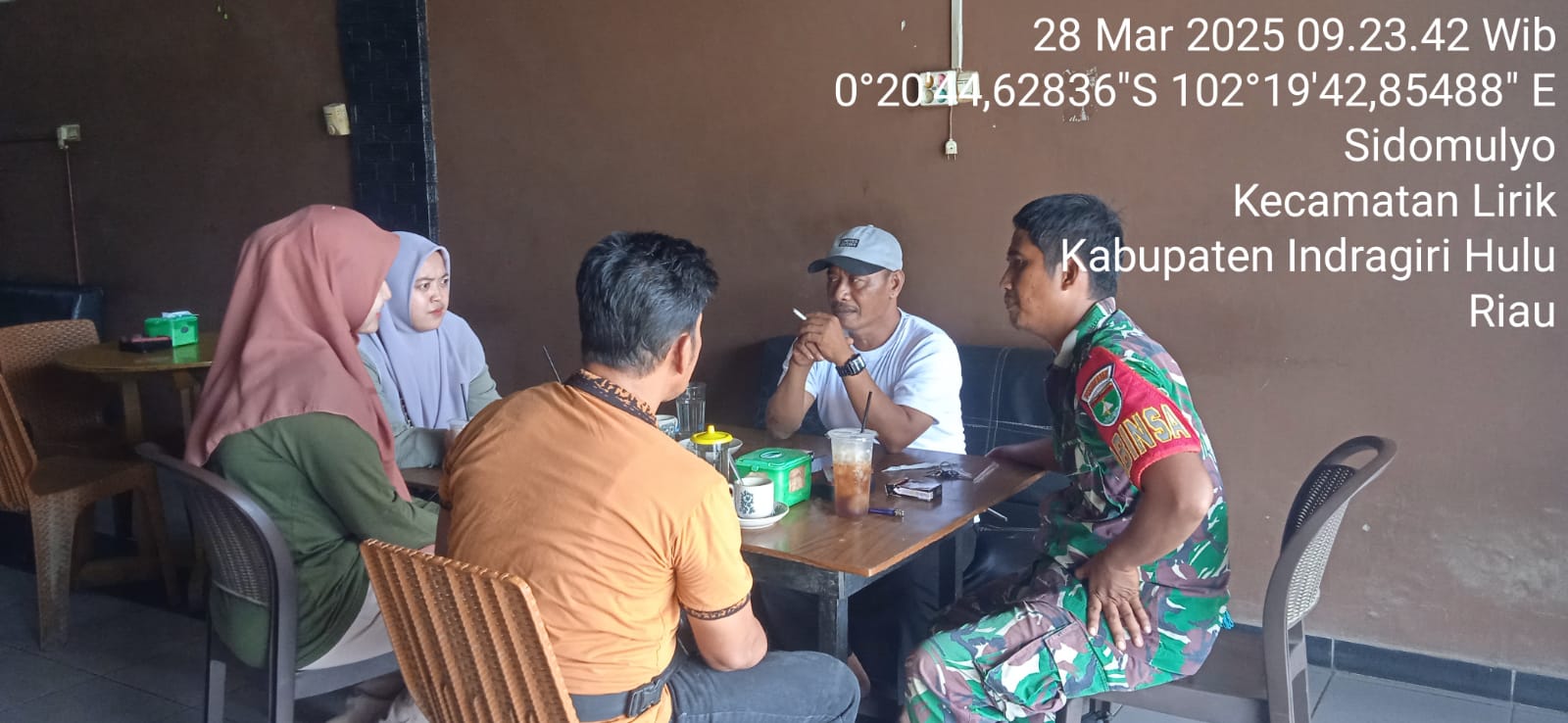 HunterNews Com – Dalam rangka mempererat hubungan silaturahmi dan menjaga kebersamaan di suasana hari raya, Babinsa Koramil 04/Pasir Penyu Kodim 0302/Inhu, Kopda Hadi Satiawan melaksanakan kegiatan Komunikasi Sosial (Komsos) bersama Kepala Desa dan perangkat Desa Sidomulyo, Kecamatan Lirik, Kabupaten Indragiri Hulu (Inhu). Kegiatan ini berlangsung pada hari Minggu, tanggal (29 Maret 2026).