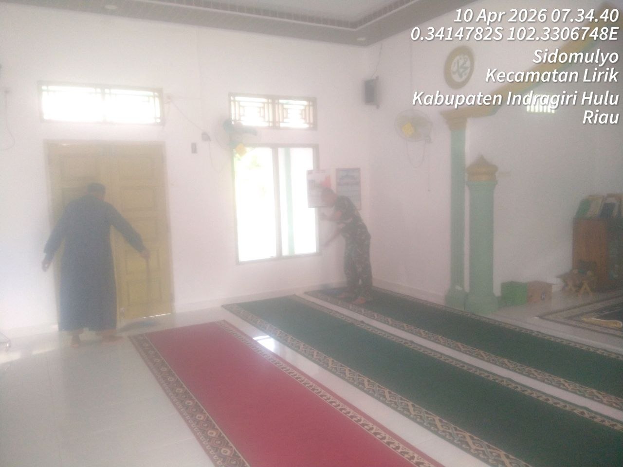 HunterNews Com, Lirik (10 April 2026) – Dalam rangka menjaga kebersihan dan kenyamanan tempat ibadah, Babinsa Koramil 04/PP Kodim 0302/Inhu, Sertu Rubiyanto, melaksanakan kegiatan gotong royong membersihkan Musholla yang berada di Desa Sidomulyo, Kecamatan Lirik, Kabupaten Indragiri Hulu (Inhu), pada hari Jumat (10/04/2026).