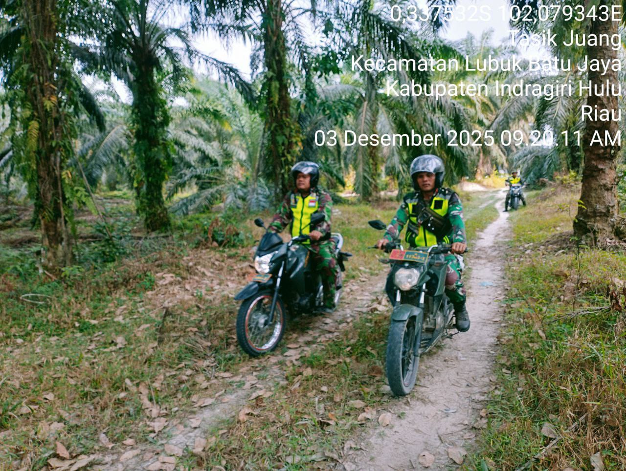 Hari ini, Serka Nana Supriatna beserta rekan babinsa sekecamatan dari Koramil 04/Pasir Penyu Kodim 0302/Inhu melaksanakan patroli di Desa Tasik Juang Kecamatan Lubuk Batu Jaya (LBJ), Kabupaten Inhu. Rabu (04/11/2025).
