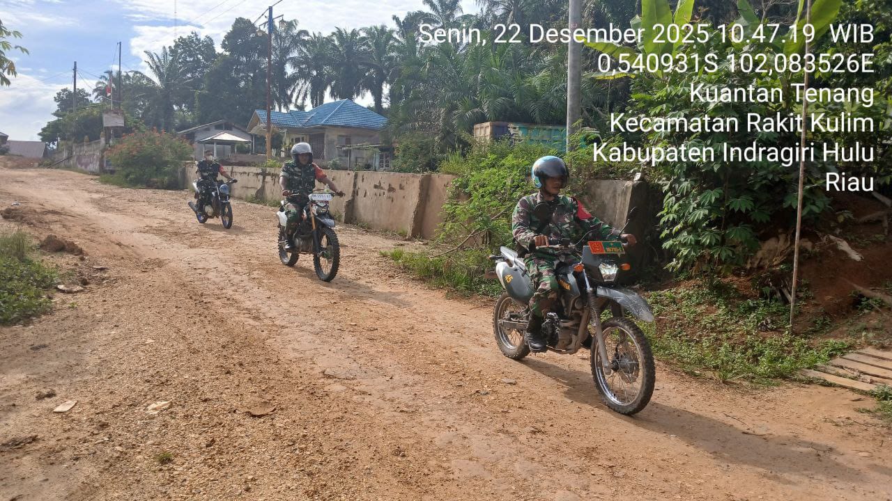 Antisipasi terjadinya kebakaran hutan dan lahan Telah hadir Babinsa Serda Wahyudi Indra bersama rekan babinsa Sekecamatan di Desa Kuantan Tenang Kecamatan Rakit Kulim, Kabupaten Inhu. Senin (22/12/2025).