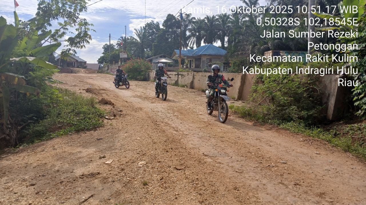 Inhu, HunterNews.Com – Patroli Dan sosialisasi Kepada Masyarakat tentang bahaya karhutla memastikan kawasan perkebunan dan semak belukar yang rawan kebakaran tetap aman Serma Ari Sucipto beserta rekan babinsa sekecamatan Koramil 04/Pasir Penyu Kodim 0302/Inhu. Di desa Petonggan Kec. Rakit Kulim Kab. Inhu. Kamis (16/10/2025).