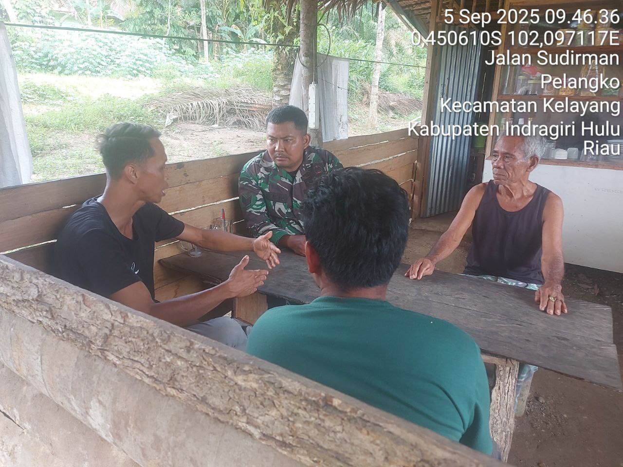 HunterNews Inhu – Serka Yubiyanto Babinsa dari Koramil 04/Pasir Penyu Kodim 0302/Inhu kembali melaksanakan kegiatan Komunikasi Sosial (Komsos) dengan beberapa warga Di Desa Pelangko Kec. Kelayang Kab.Inhu. Jumat (05/09/2025).