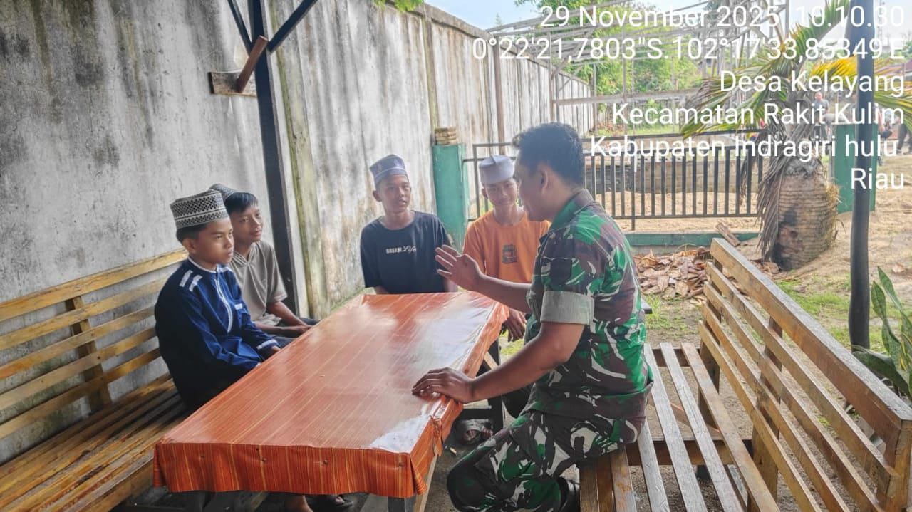 Inhu, HunterNews Com – Babinsa Koramil 04/Pasir Penyu Kodim 0302/Inhu, Koptu Edi Winarjono , melaksanakan kegiatan Komunikasi Sosial (Komsos) dengan para santri di Desa Candirejo, Kecamatan Pasir Penyu Kabupaten Inhu. Sabtu (29/11/2025).