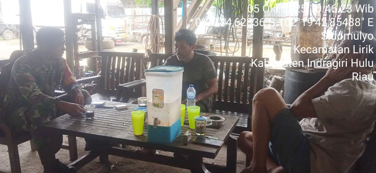 HunterNews Inhu – Babinsa Koramil 04/Pasir Penyu Kodim 0302/Inhu Kopda Hadi Satiawan melaksanakan Komunikasi Sosial (Komsos) dengan tokoh masyarakat Desa Sidomulyo Kec. Lirik Kab. Inhu. Minggu (05/10/2025).