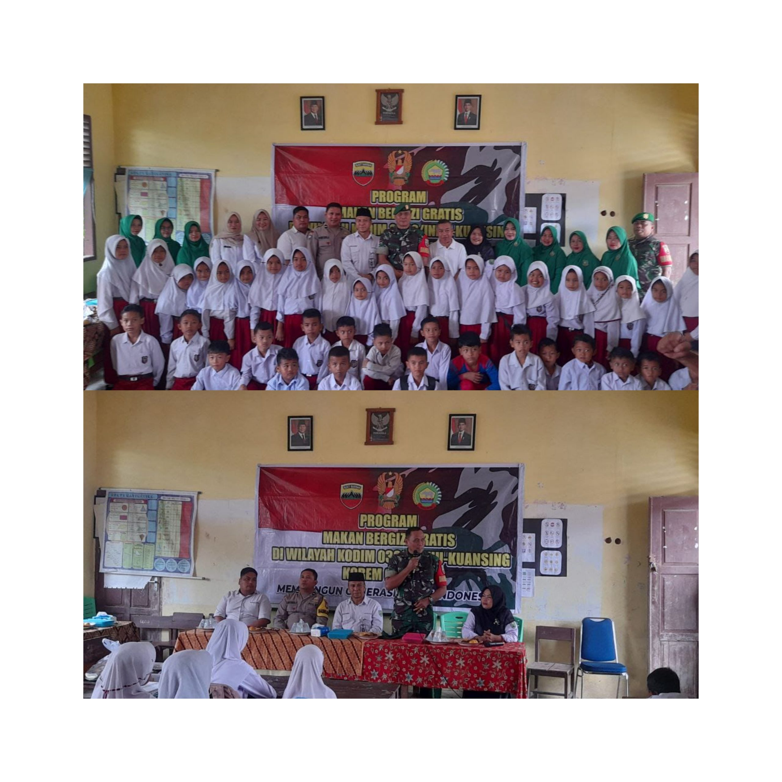 Pemberian makan gratis di wilayah teritorial Koramil 05/Peranap Kodim 0302/Inhu di berikan di SDN 017 di Desa Baturijal Hulu Kec. Peranap Kab. Indragiri Hulu, Rabu (23/07/2025).