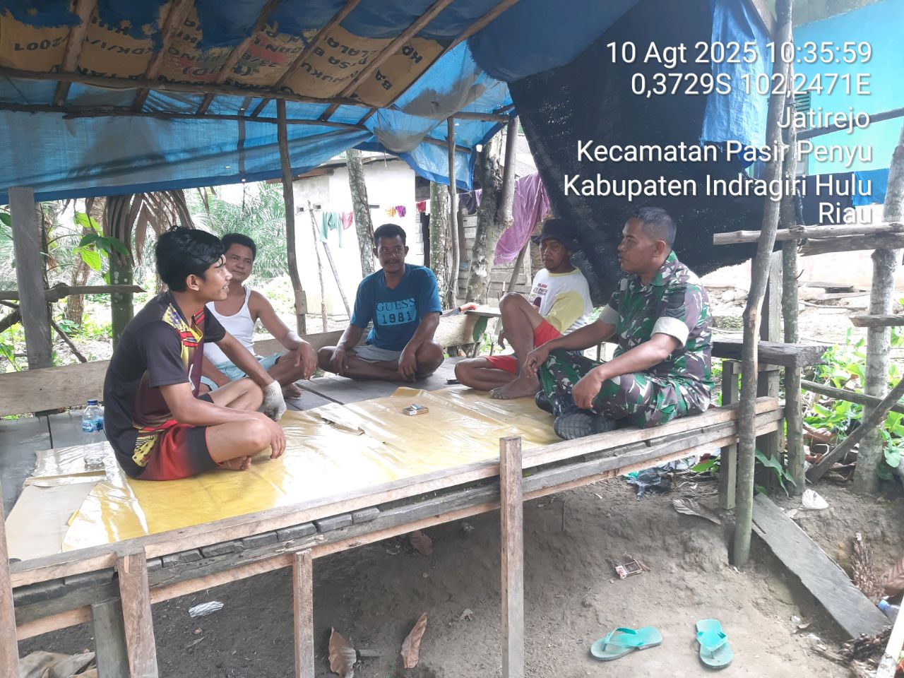 Hunter News Inhu – Dalam rangka memperingati Hari Ulang Tahun (HUT) ke 80 Kemerdekaan Republik Indonesia mendatang, Sertu Ilson Syafriadi Babinsa Koramil 04/Pasir Penyu Kodim 0302/Inhu melalui komsos menghimbau masyarakat binaannya untuk memasang bendera Merah Putih di depan rumah masing-masing, himbauan tersebut disampaikannya saat berkunjungan ke warung bapak Retno, tepatnya di Desa Jatirejo Kecamatan Pasir Penyu Kabupaten Inhu. Minggu (10/08/2025).