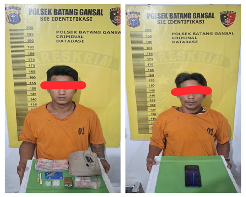 Kedua pelaku yakni Saprianto alias Baron (31) dan Tugino alias Rapi (45). Dari tangan mereka, polisi berhasil mengamankan barang bukti berupa dua bungkus sabu dengan berat kotor 3,86 gram, timbangan elektrik, alat hisap, dua unit ponsel, sepeda motor, hingga uang tunai Rp 4,6 juta yang diduga hasil penjualan sabu.