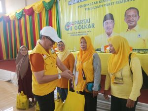 Foto: Ketua DPD II Partai Golkar Inhu, Arsyadi SH Serahkan Sembako Dengan Srikandi Militan Partai Golkar