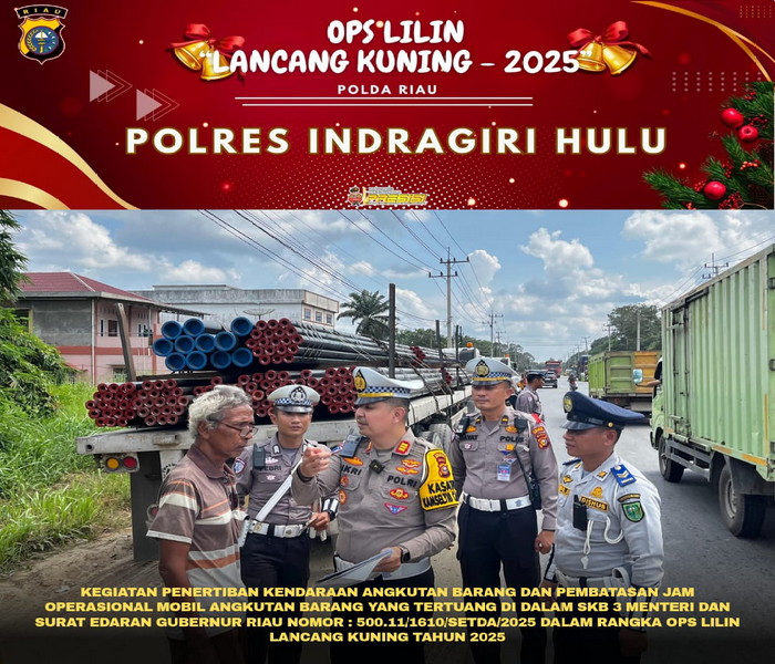 HunterNews Com – Dalam rangka mendukung kelancaran Operasi Lilin Lancang Kuning Tahun 2025, Satuan Lalu Lintas Polres Indragiri Hulu melaksanakan kegiatan penertiban kendaraan angkutan barang serta pembatasan jam operasional, sebagaimana diatur dalam SKB 3 Menteri dan Surat Edaran Gubernur Riau Nomor 500.11/1610/SETDA/2025.