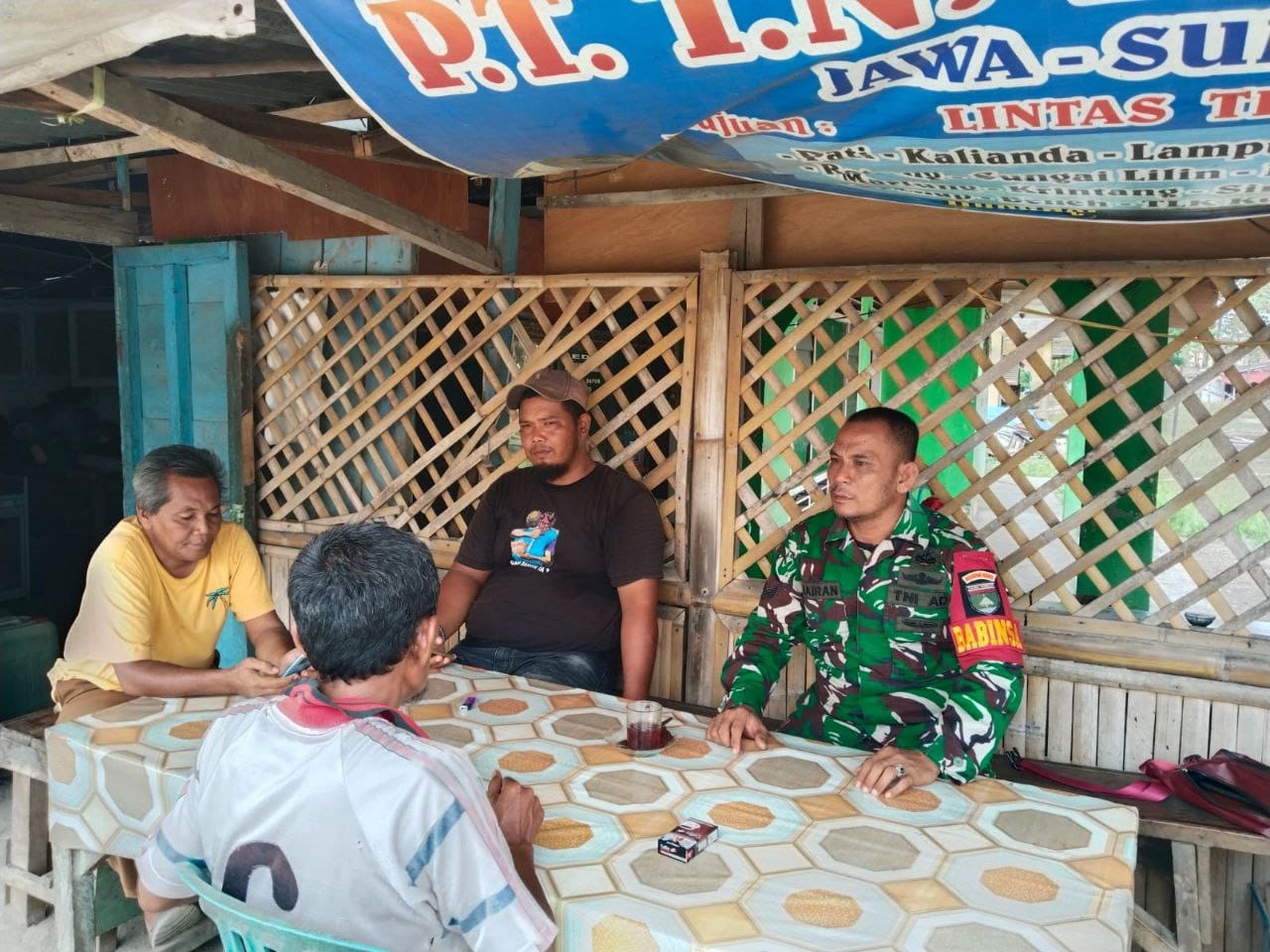 Inhu, HunterNews Com – Babinsa Sertu Khairan anggota Koramil 05/Peranap Kodim 0302/Inhu, melaksanakan kegiatan Komunikasi Sosial (Komsos) dengan masyarakat di Warung Kopi Kel. Peranap, Kecamatan Peranap, Kabupaten Indragiri Hulu, Senin (10/11/2025).
