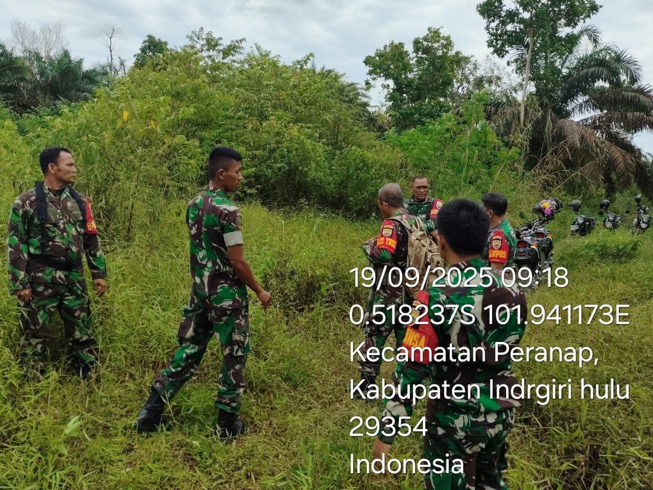HunterNews Inhu – Tim Satgas Karhutla Koramil 05/Prp kembali melaksanakan kegiatan patroli gabungan dalam upaya mencegah kebakaran hutan dan lahan (Karhutla) di Desa Baturijal Hulu Kec. Peranap Kab.INHU titik kordinat: 0.518237S 101.941173E, JUMAT (19/9).