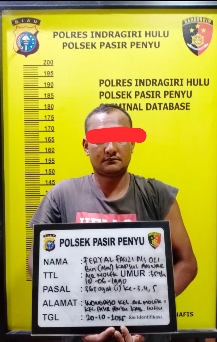 Penangkapan saudara Fery Al Fauzi, laki – laki, Air Molek 18 Juni 1990, 35 tahun, Alamat Wonorejo RT/001 RW/002 Kel. Air Molek I Kec. Pasir Penyu Kab. Inhu sebelumnya ditetapkan DPO oleh Polsek Pasirpenyu dari hasil pengakuan tersangka Yulisman akhirnya tersangka berhasil diciduk polisi dikediamannya.